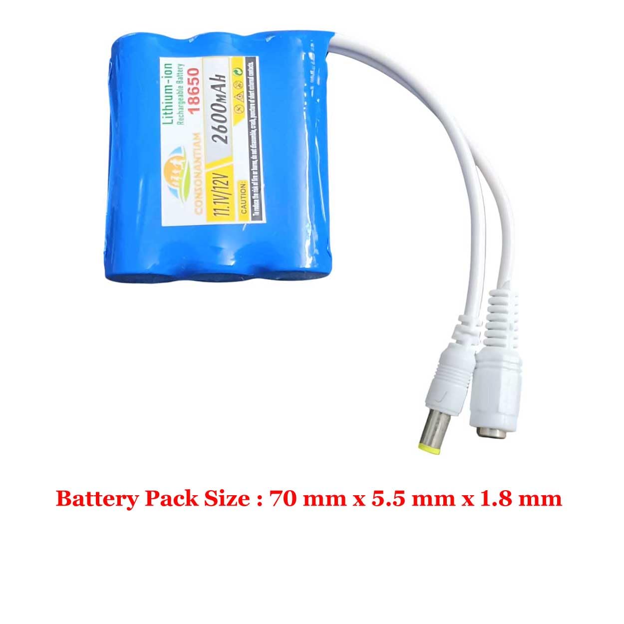 - Product description CONSONANTIAM 12 Volt Battery Pack 2600 mAH Full Capacity 18650 Lithium Ion Rechargeable Battery Pack with 5.5x2.1 Dc Jack Multipurpose Use in Toys Drown Student Product Etc. Battery Pack 12 volt Battery pack 2500 mah 12 volt Battery pack 2600 mah 12 volt Battery pack 3000 mah 12 volt Battery pack 1200 mah 3.7 volt Battery pack 2500 mah 3.7 volt Battery pack 2600 mah 3.7 volt Battery pack 3000 mah 3.7 volt Battery pack 1200 mah 7.4 volt Battery pack 2500 mah 7.4 volt Battery pack 2600 mah 7.4 volt Battery pack 3000 mah 7.4 volt Battery pack 1200 mah