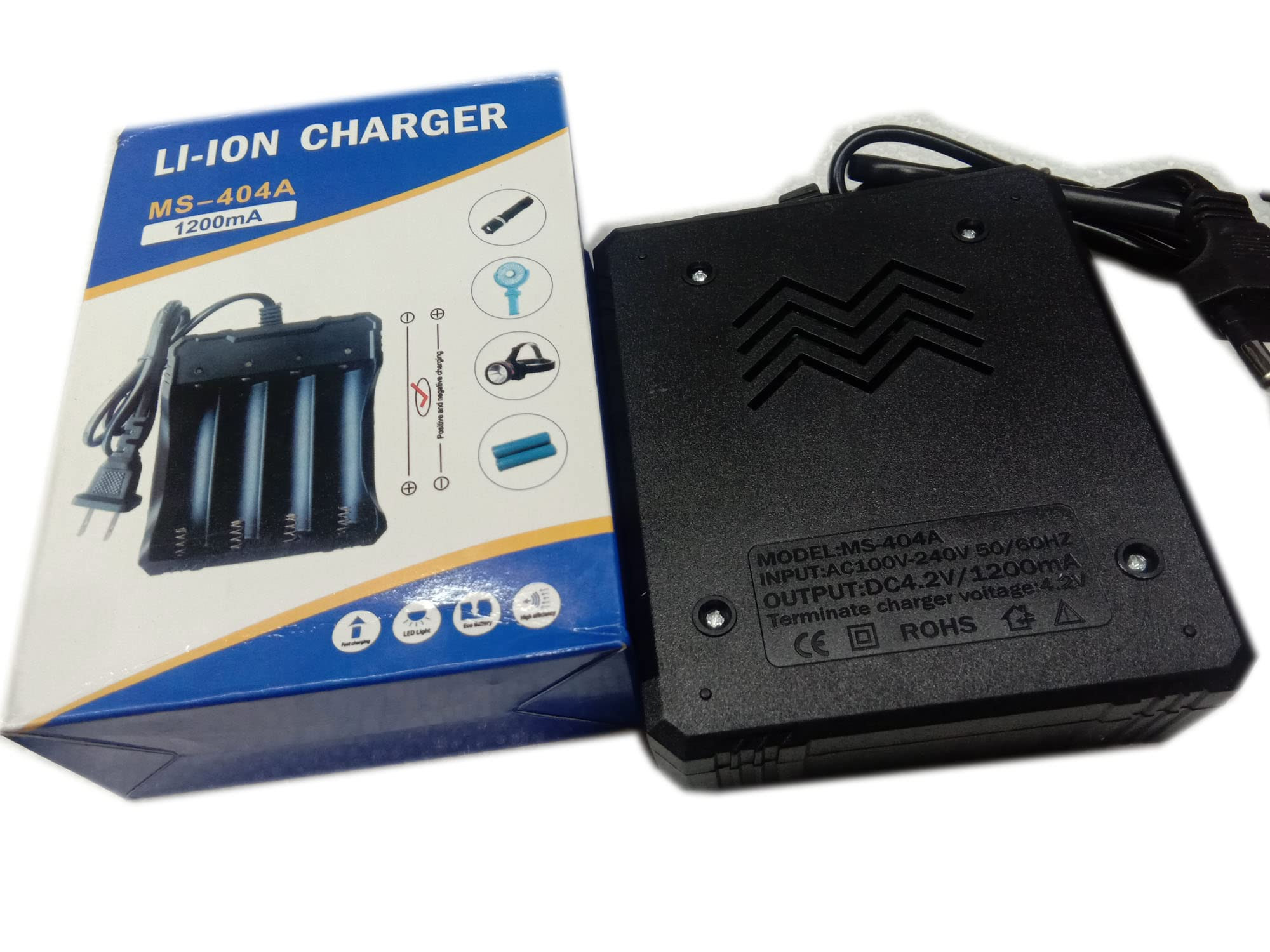 CONSONANTIAM 1200AH Rechargeable Lithium Ion Battery Charger, Charger Lithium ion MS-404A Game Battery CONSONANTIAM 1200AH Rechargeable Lithium Ion Battery Charger, Charger Lithium ion MS-404A Versatile Charging Device: This battery invertor/charger is compatible with 18650 lithium-ion batteries, allowing you to charge and discharge them efficiently. High-Capacity Battery: The included 18650 rechargeable Li-ion battery boasts a 1200 Ah capacity, providing ample power for your devices. Intelligent Charging: The MS-404A charger features a 1200mA charging current, ensuring safe and optimal charging for your batteries. Compact Design: With its portable size, this charger is convenient for travel or on-the-go use. Reliable Performance: Constructed with high-quality materials, this battery invertor/charger offers dependable and long-lasting performance.