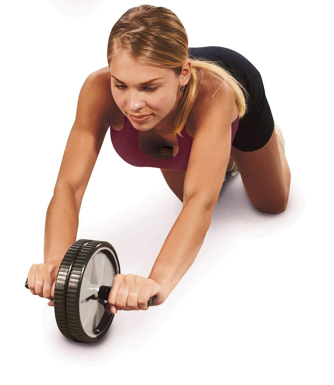 - The ab wheel features two non-skid wheels joined to a solid metal bar for safety and stability. Many other wheel exercisers require users to balance on handles extending from just one wheel. Our ab wheel handles are covered with cushioned rubber foam grips. The ab wheel tones every upper body muscle group; including shoulders, arms, back and abs