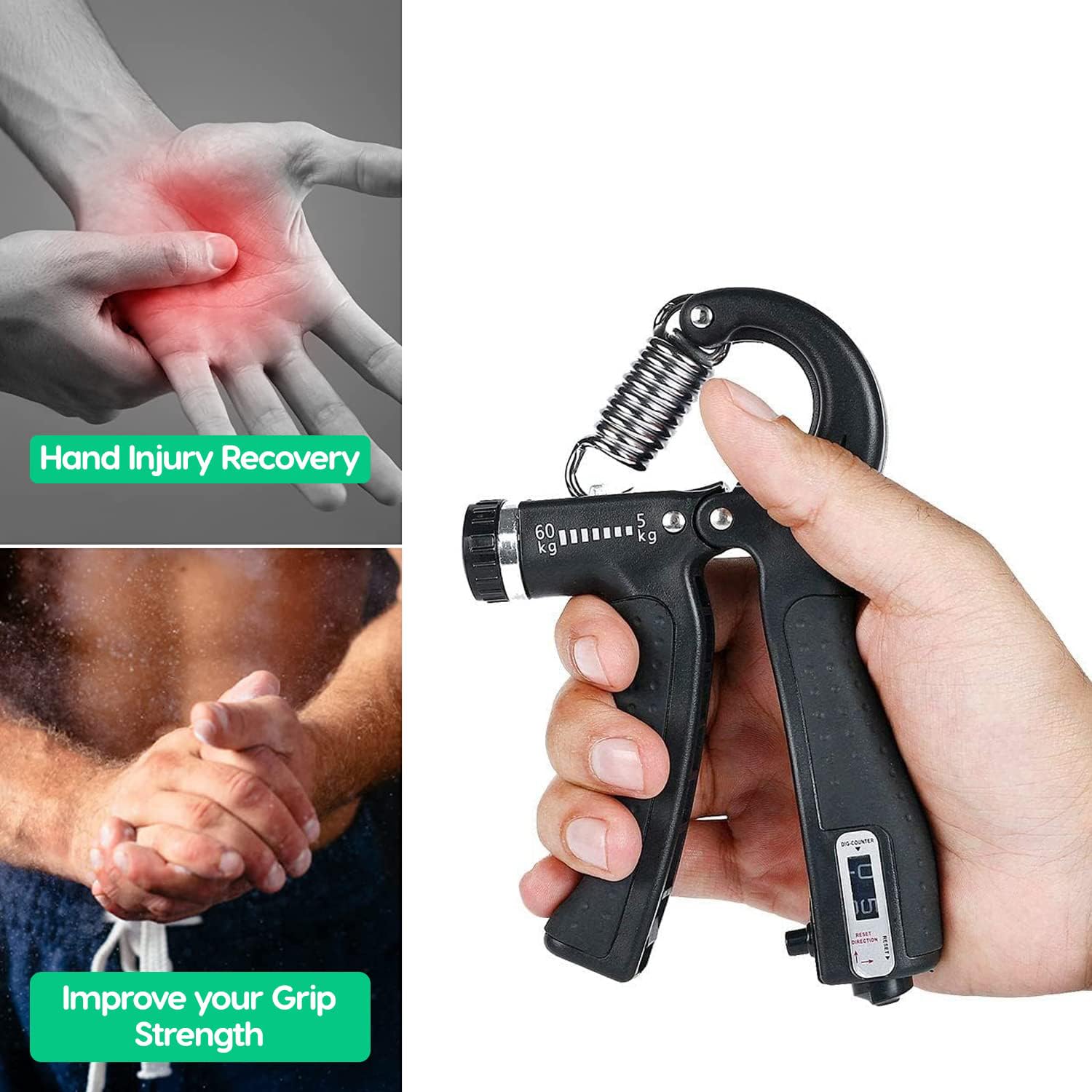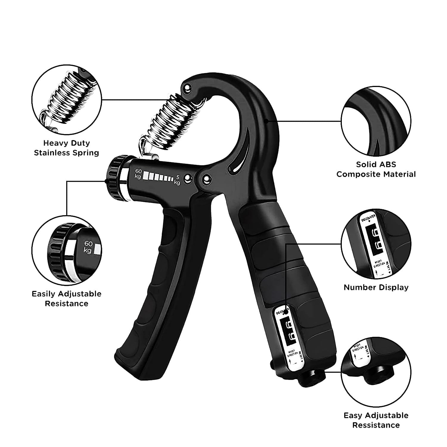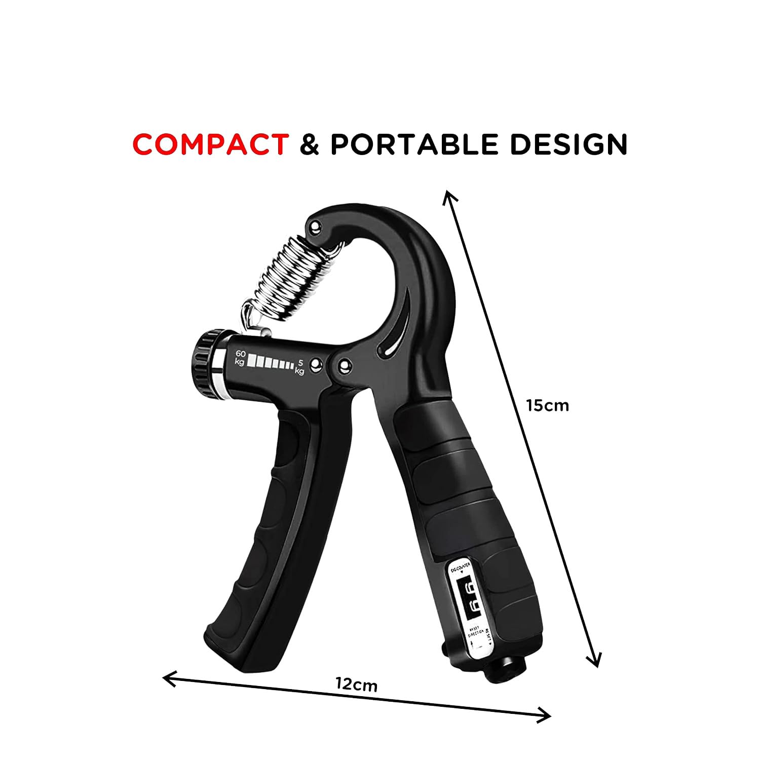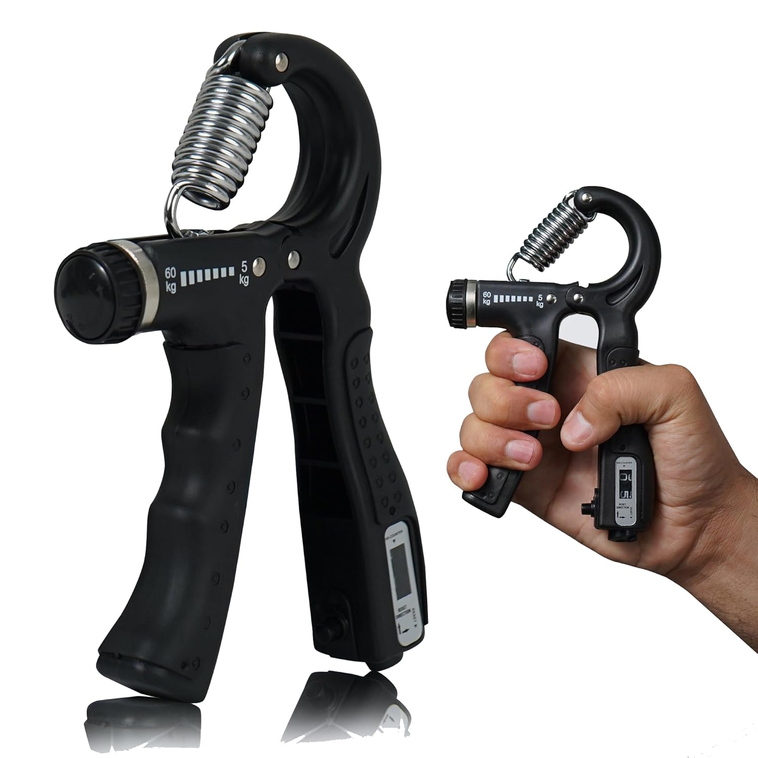 Train your forearms, wrists and fingers better than ever before with the added counter for you to keep track of your reps, and strength progress. Designed with finger grooves for the perfect fit, hard compressed stainless steel spring engages muscles that are harder to target. Take it everywhere and get stronger from the gym to the office.Durable grip handle ergonomically designed to make sure your get the most out of your workouts with the Handgrip. Stainless steel spring that ensures smooth workouts for the best results. The lightweight material is perfect for portability, and stays in the best shape with no rust build-up. Say hello to sweaty sessions. Manufactured with high quality stainless steel, in-built counter and grip for comfort and support. It’s made to be authentically for an authentic you.Strengthen your forearm, finger and wrist muscles easily and keep count, thanks to the in-build counter that keeps following your reps and progress.At the turn of a knob, or a press of a button match your resistance to your goal needs with the adjustable resistance on the fit Handgrip with counter,Train as hard as you can with the maximum comfort and support from the ergonomically designed and extremely durable grip handles.
