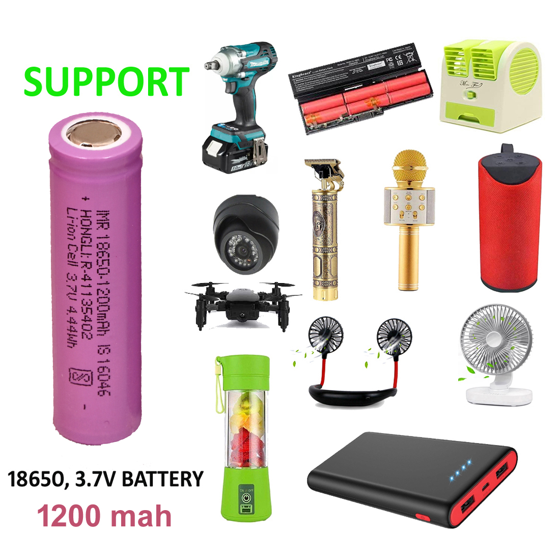 - Versatile lights, Bluetooth speakers, emergency lights, laptops, power banks, Buddha Trimmer, USB Juicer, Laptop Battery, Drown Battery USB Fan Usb Cooler, Electronic Project, School Project and torches, ensuring compatibility with a wide range of electronics.